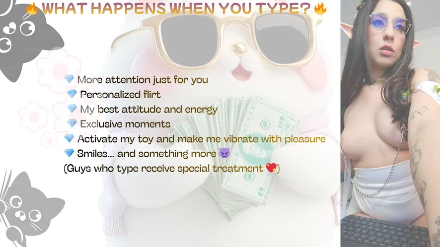 When you interact with me, you don't just watch: you participate. I let myself go, I react to every stimulus and make you feel like I'm there just for you.